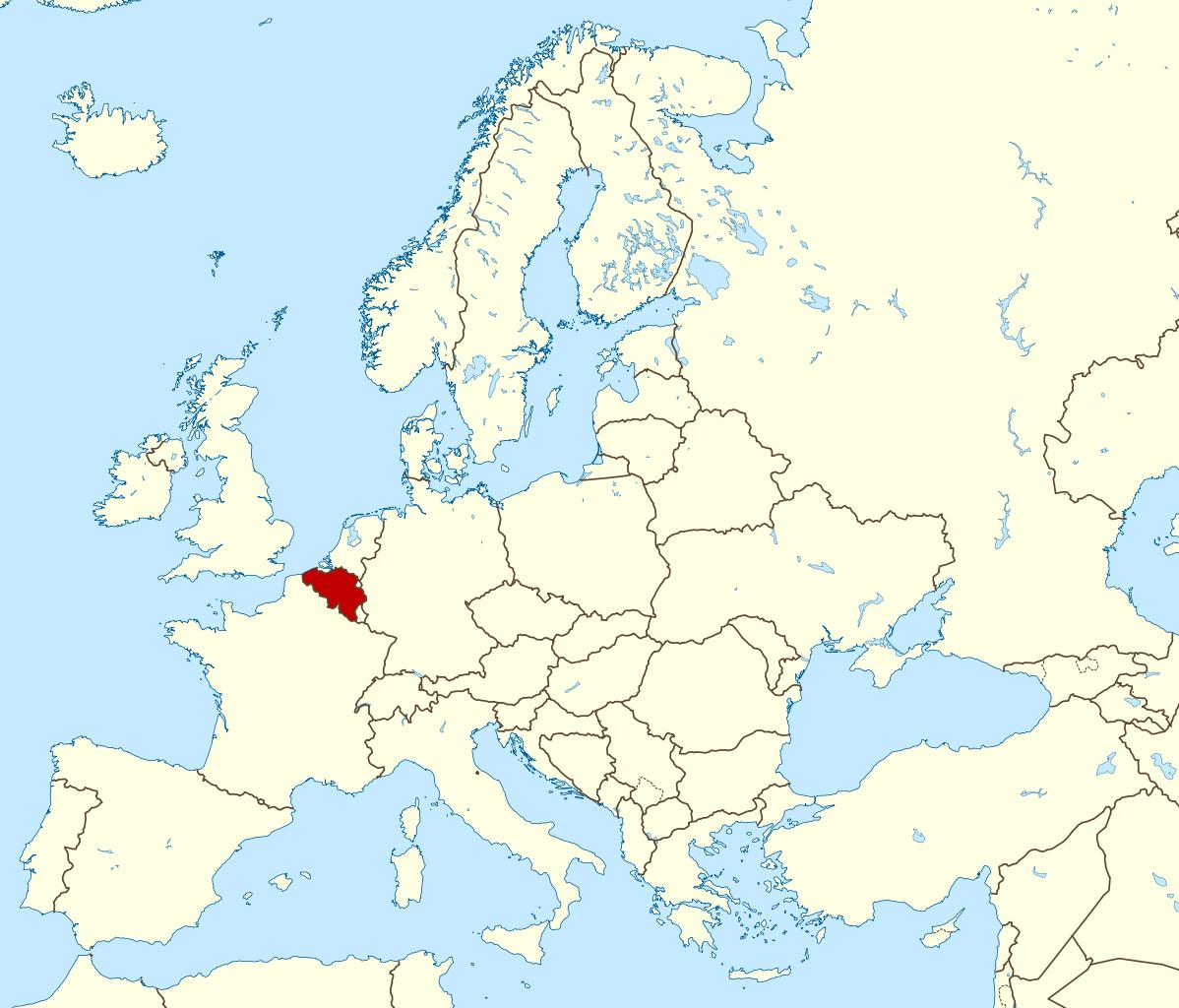 Mappa di Belgio posizione. Belgio posizione sulla mappa (Europa Occidentale, Europa) per la stampa. Belgio posizione sulla mappa (Europa Occidentale, Europa) per scaricare. Il Belgio è una nazione situata nell'Europa occidentale. Si trova tra i Paesi Bassi a nord, la Germania e il Lussemburgo a est, la Francia a sud e il Mare del Nord a ovest. Il Belgio è grande quanto il Maryland, ha una superficie di 30.510 chilometri quadrati e comprende 280 chilometri quadrati di vie d'acqua interne. Ha 66 chilometri (41 miglia) di costa e i suoi confini ammontano a 1.385 chilometri (861 miglia). Il Belgio condivide 620 chilometri (385 miglia) con la Francia, 167 chilometri (103 miglia) con la Germania, 148 chilometri (92 miglia) con il Lussemburgo, e 450 chilometri (280 miglia) con i Paesi Bassi come mostrato nella mappa del Belgio. La nazione rivendica anche una zona di pesca esclusiva che si estende per 68 chilometri (42 miglia) nel Mare del Nord. Il Belgio è il tradizionale crocevia dell'Europa e la sua capitale, Bruxelles, serve anche come capitale dell'Unione Europea (UE).